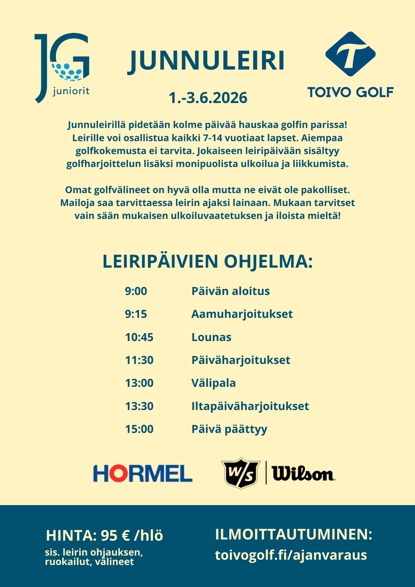 Leirille ilmoittautuminen: toivogolf.fi/ajanvaraus